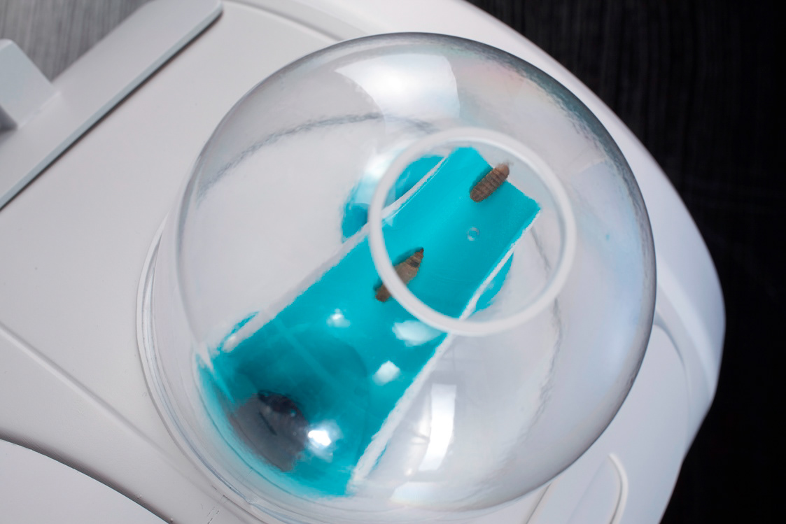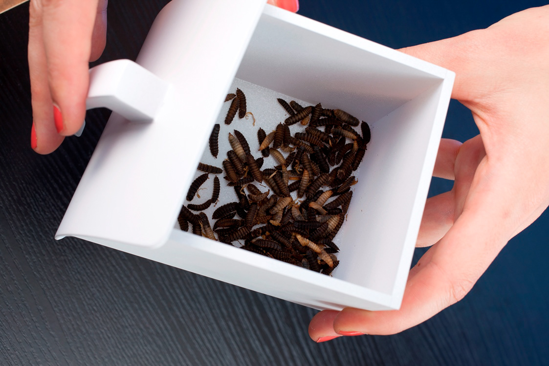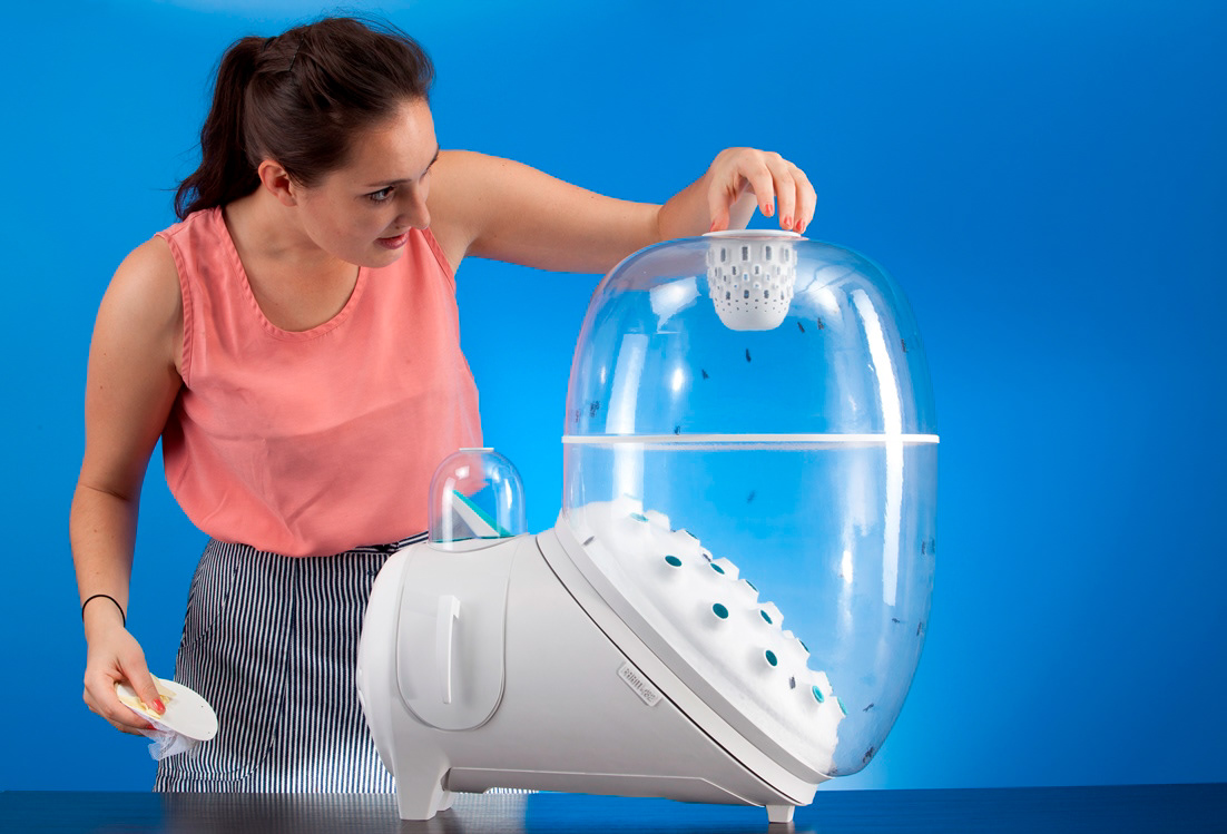 Developed February-June 2013, published July 2013 PATENT PROTECTED By 2050 meat production will have to increase by 50%. Considering that we already use one third of croplands for the production of animal feed, we will have to look for alternative food sources and alternative ways of growing it. Farm 432 enables people to turn against the dysfunctional system of current meat production by growing their own protein source at home. After 432 hours, 1 gram of black soldier fly eggs turn into 2.4 kilogram of larvae protein, larvae that self-harvest and fall clean and ready to eat into a harvest bucket. This scenario creates not only a more sustainable future of food production, but suggests new lifestyles and food cultures. Black soldier fly adults don´t eat, the larvae can be fed on bio waste, therefore the production almost costs no water or CO2. Black soldier fly larvae are one of the most efficient protein converters in insects, containing up to 42% of protein, a lot of calcium and amino acids. featured by media around the globe including: Wired.com FastCoDesign FastCoExist Eatocracy by CNN Yahoo News Global SciencesEtAvenir German/Austrian: Profil Presse Schaufenster Online Kurier Datum Neon Durst and many more